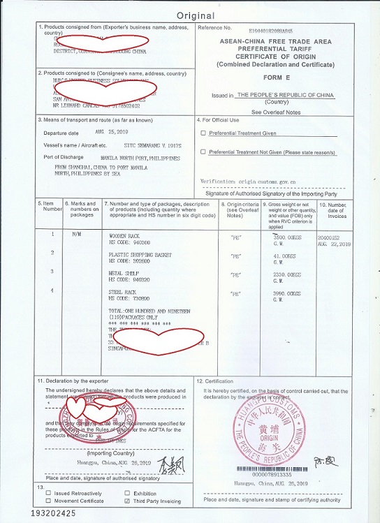 中國(guó)東盟自由貿(mào)易區(qū)優(yōu)惠原產(chǎn)地證明書,簡(jiǎn)稱《FORM E 證書》或《東盟證書》,英文名稱為《ASEAN-CHINA FREE TRADE AREA PREFERENTIAL TARIFF CERTIFICATE OF ORIGINFORM E》。FORM E 證書的簽發(fā),限于已公布的《貨物貿(mào)易協(xié)定》項(xiàng)下給予關(guān)稅優(yōu)惠的產(chǎn)品,這些產(chǎn)品必須符合《中國(guó)——東盟自由貿(mào)易區(qū)原產(chǎn)地規(guī)則》。證書內(nèi)容以英文填寫。