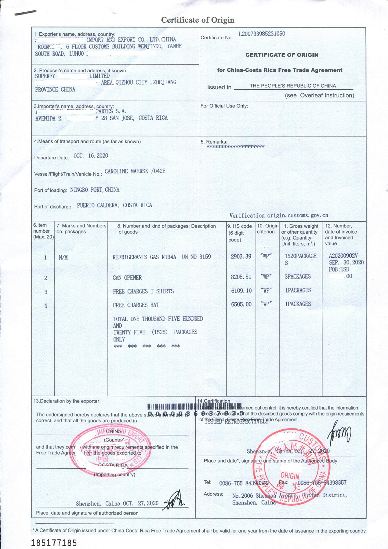 按照《中國(guó)-哥斯達(dá)黎加自由貿(mào)易協(xié)定》相關(guān)規(guī)定,憑借這份優(yōu)惠原產(chǎn)地證明書,該批貨物在哥入境通關(guān)時(shí)可享受零關(guān)稅。