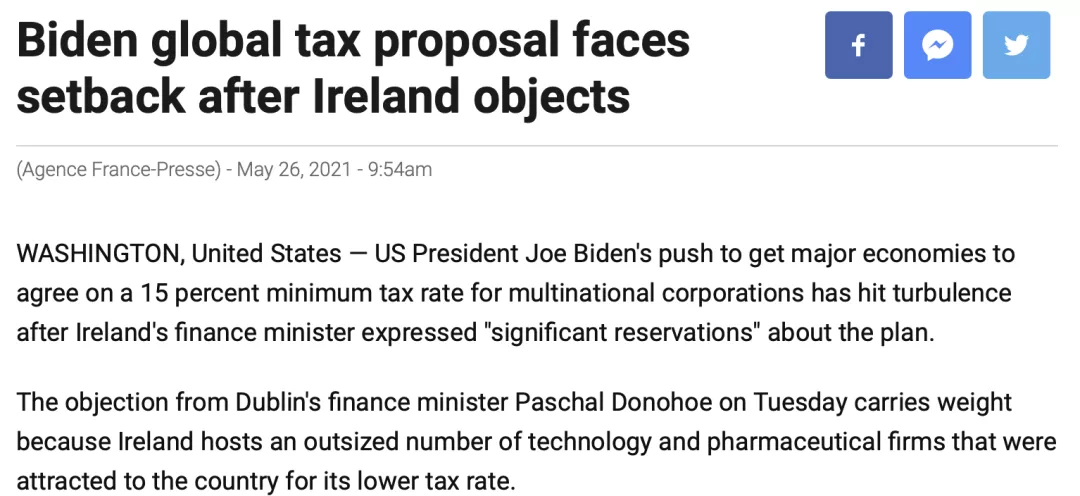 只是時移世易,曾經(jīng)的12.5%即將被15%所取代,那么,愛爾蘭在接下來的15%最低全球稅率體系中就只能“悲劇”了。正因為如此,在一眾避稅天堂中,愛爾蘭不顧一切地站了出來,直接對新的最低稅率表示反對。