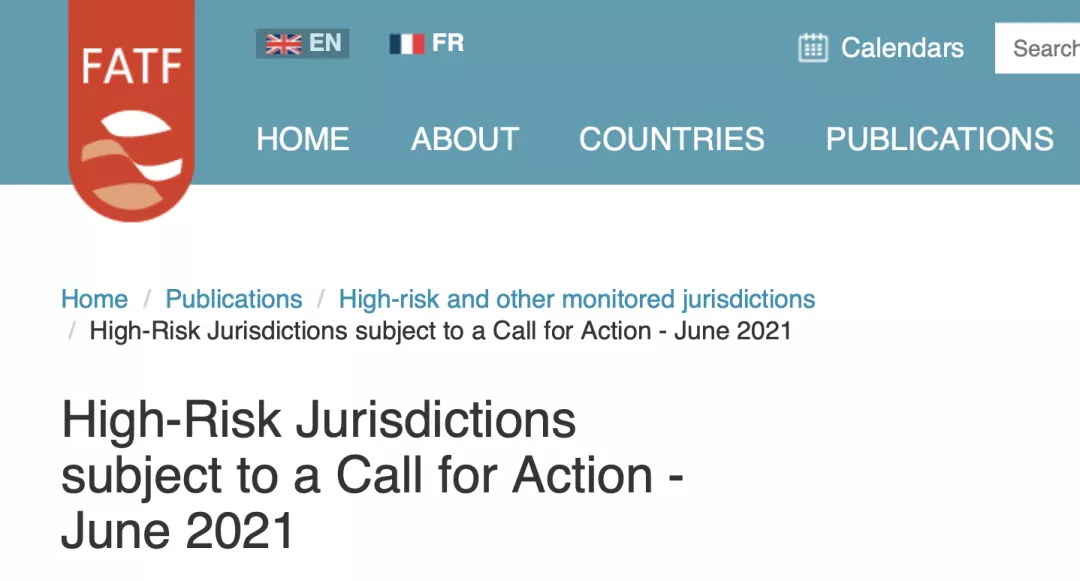 - “呼吁對其采取行動的高風(fēng)險國家或地區(qū)(High-risk jurisdictions subject to a call for action)”,即“FATF黑名單”——朝鮮和伊朗。
