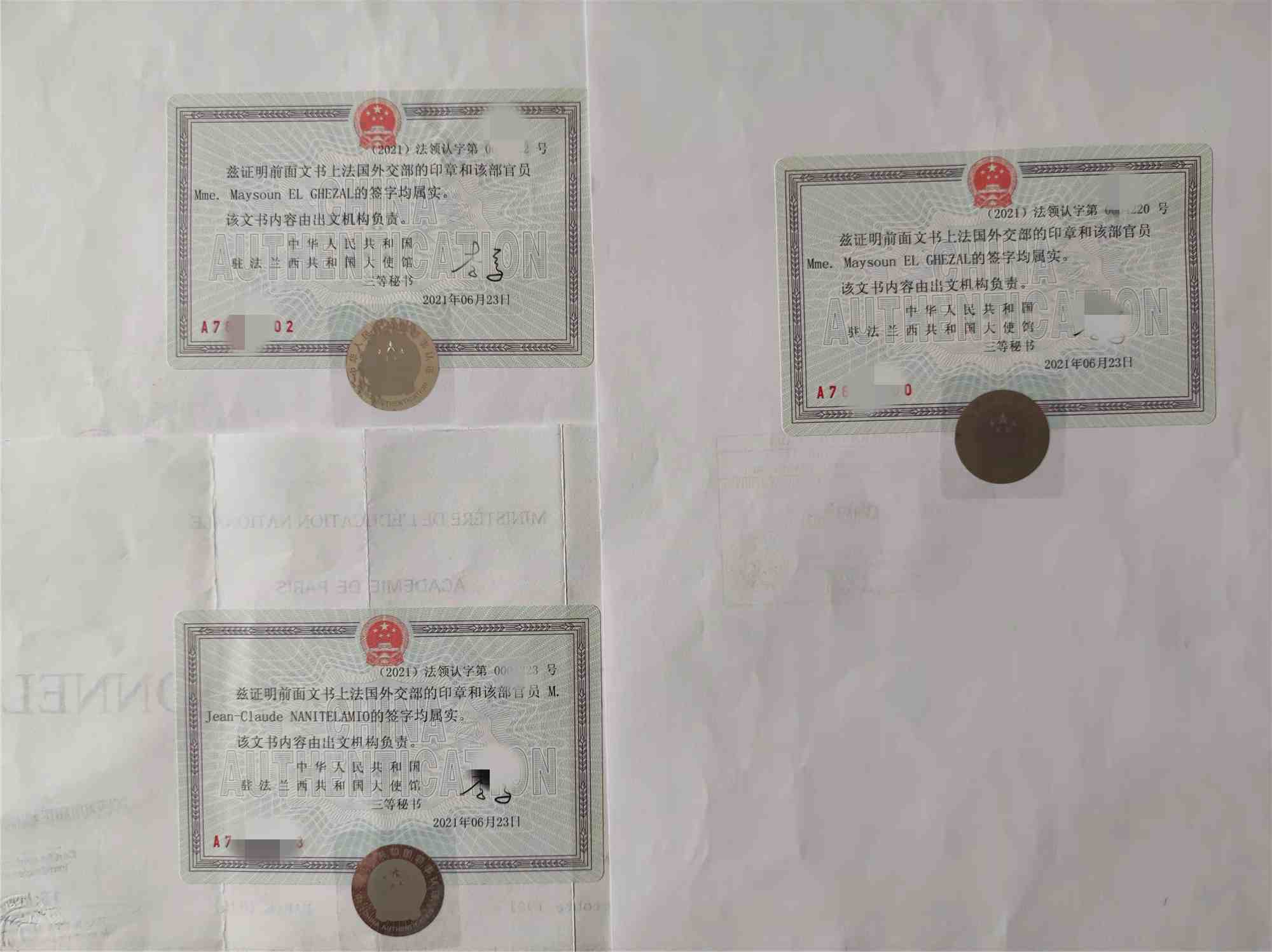 第六步:把公證和認證好之后的文件送往中國駐法國使館進行認證即可