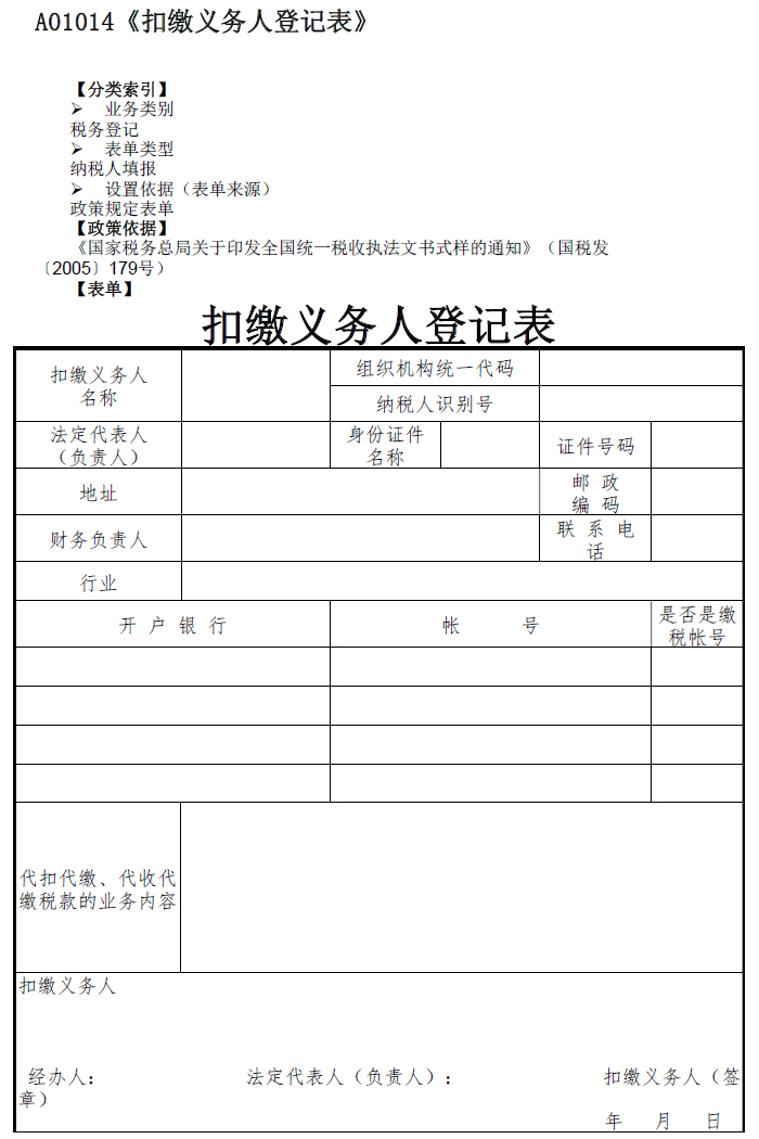 1.初次辦理代扣代繳義務(wù)的企業(yè),請?zhí)顚懖⒋蛴、佟犊劾U義務(wù)人登記表》;