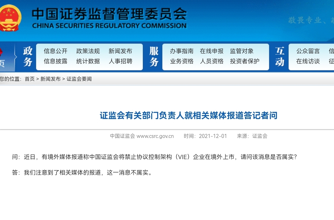禁止VIE架構(gòu)海外上市的傳聞不實
