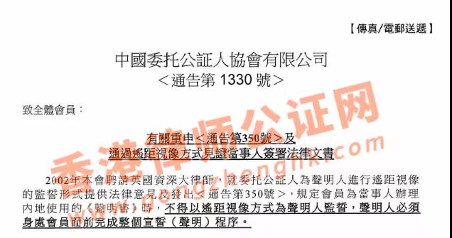 為此,中國委托公證人協(xié)會(huì)有限公司曾發(fā)布《通告第1330號(hào)》,特別做了如下說明: