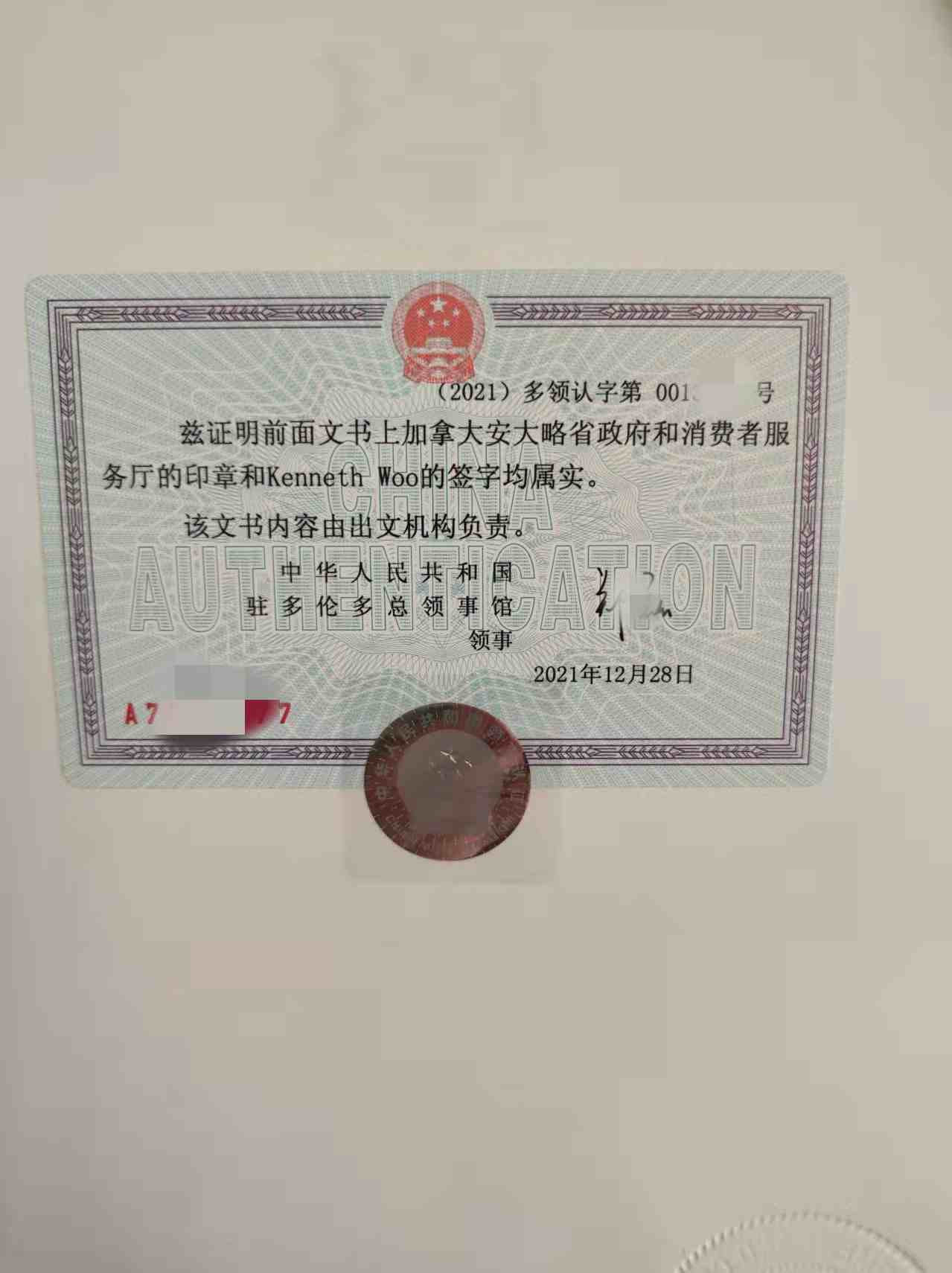 加拿大公證人公證,省政府認(rèn)證,中駐加拿大使館認(rèn)證