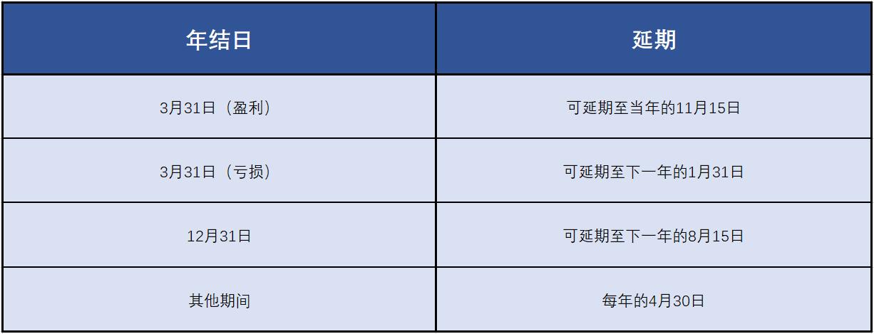 香港利得稅3月31年結(jié)日最長(zhǎng)能申請(qǐng)延期8個(gè)月,也是最多人選擇的年結(jié)日。答