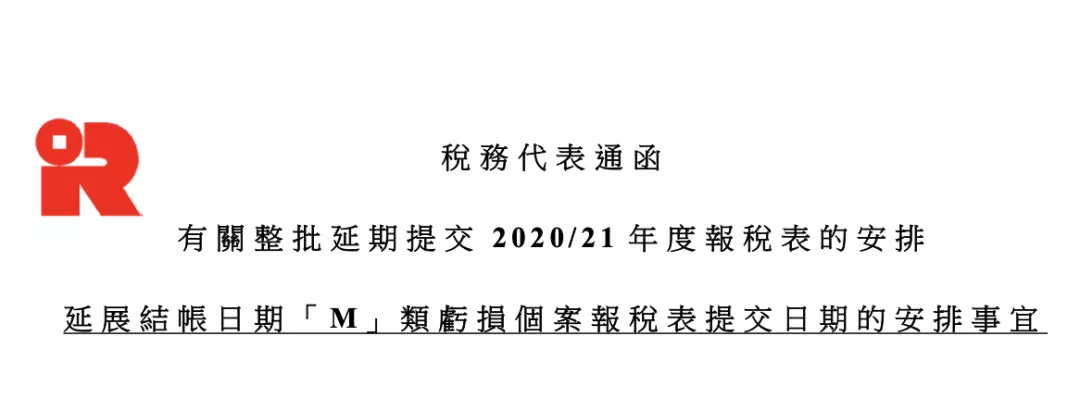 所謂結帳日期“ M ”類,是指結帳日期介乎“ 2021年 1月 1日至 2021年 3月 31日”者。根據(jù)稅務局通知,延展提交2020/21年度 “M ”類利得稅報稅表的“最后提交期由2022年1月31日延展至2022年2月28日?!?br />