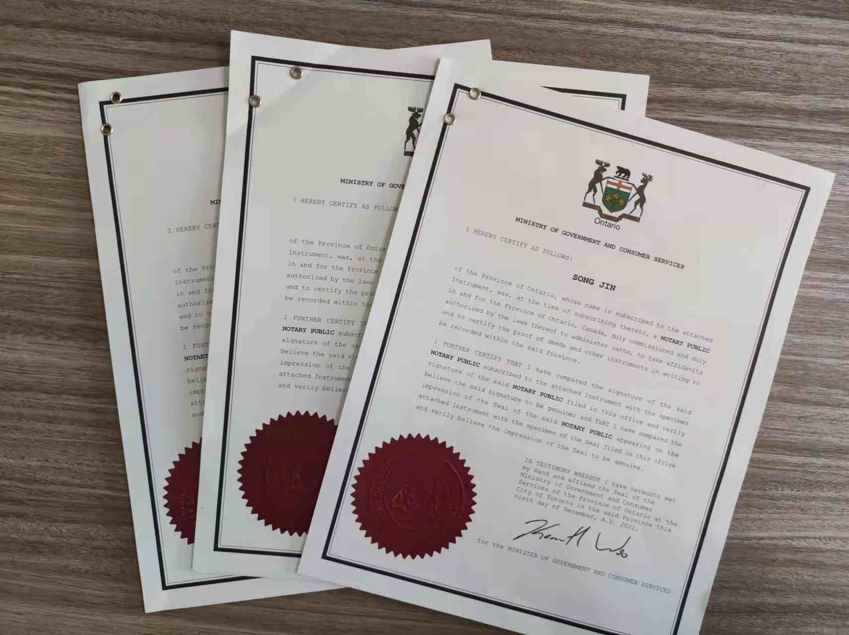 2.將公證好的文件遞交到加拿大省政府進行辦理認證。