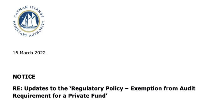 3月16日(本周三),開曼群島金融管理局(Cayman Islands Monetary Authority,下稱“CIMA”)發(fā)布最新通知,表示開曼群島已就《私募基金法案》(Private Fund Act)做出修訂,豁免未收到投資者注資的開曼私募基金的年度審計。