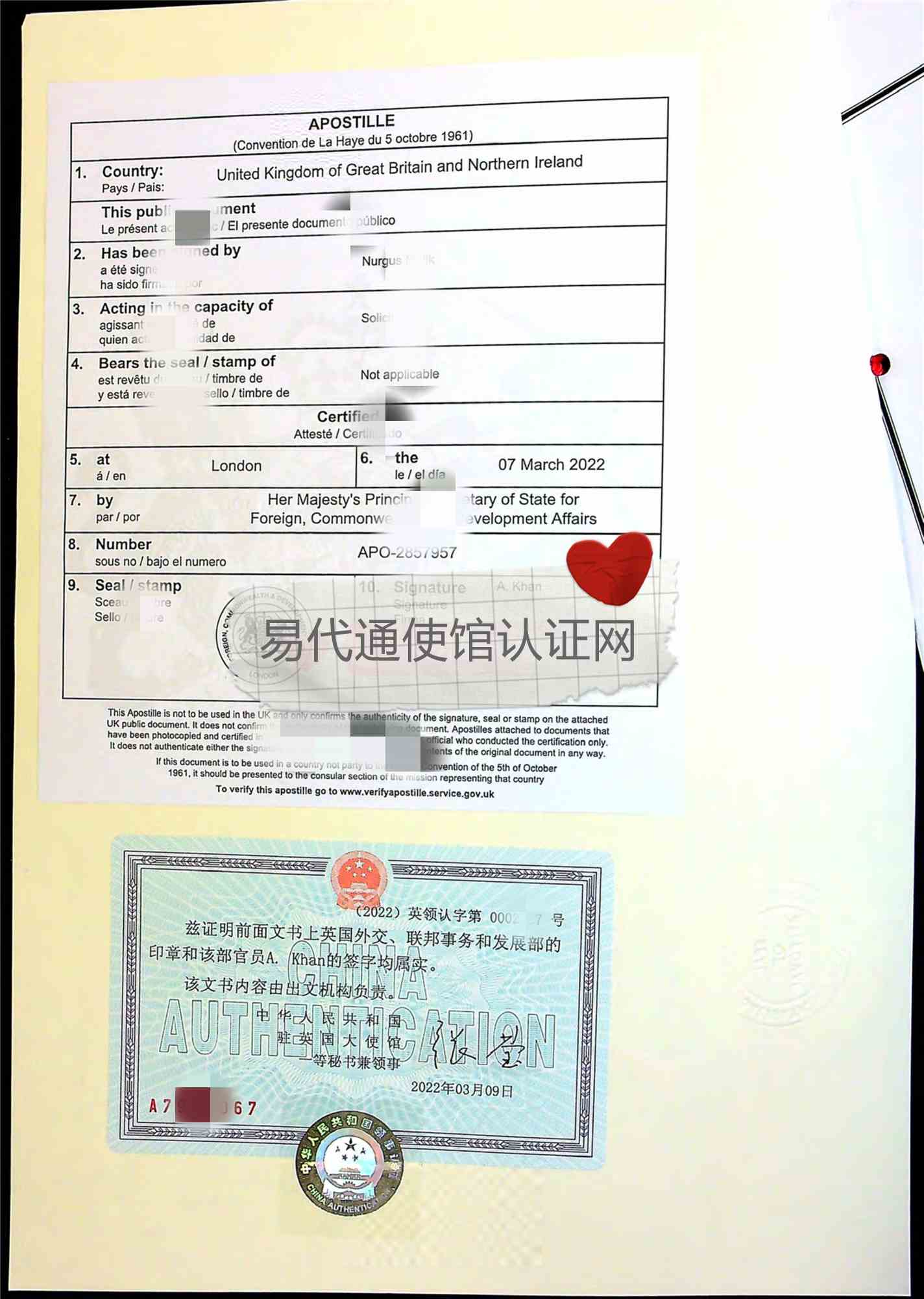 由于英國(guó)結(jié)婚證是英國(guó)頒發(fā)的文件,當(dāng)事人提供原件的話(huà),公證人就直接對(duì)你提供的原件辦理認(rèn)證手續(xù),也就是說(shuō)省去了公證這一步。如果客戶(hù)提供的是掃描件,那么就要我們的公證人去申請(qǐng)一份核證副本,然后對(duì)核證副本辦理認(rèn)證手續(xù)。還需要提供當(dāng)事人夫妻的護(hù)照掃描件,填寫(xiě)一份使館認(rèn)證申請(qǐng)表。