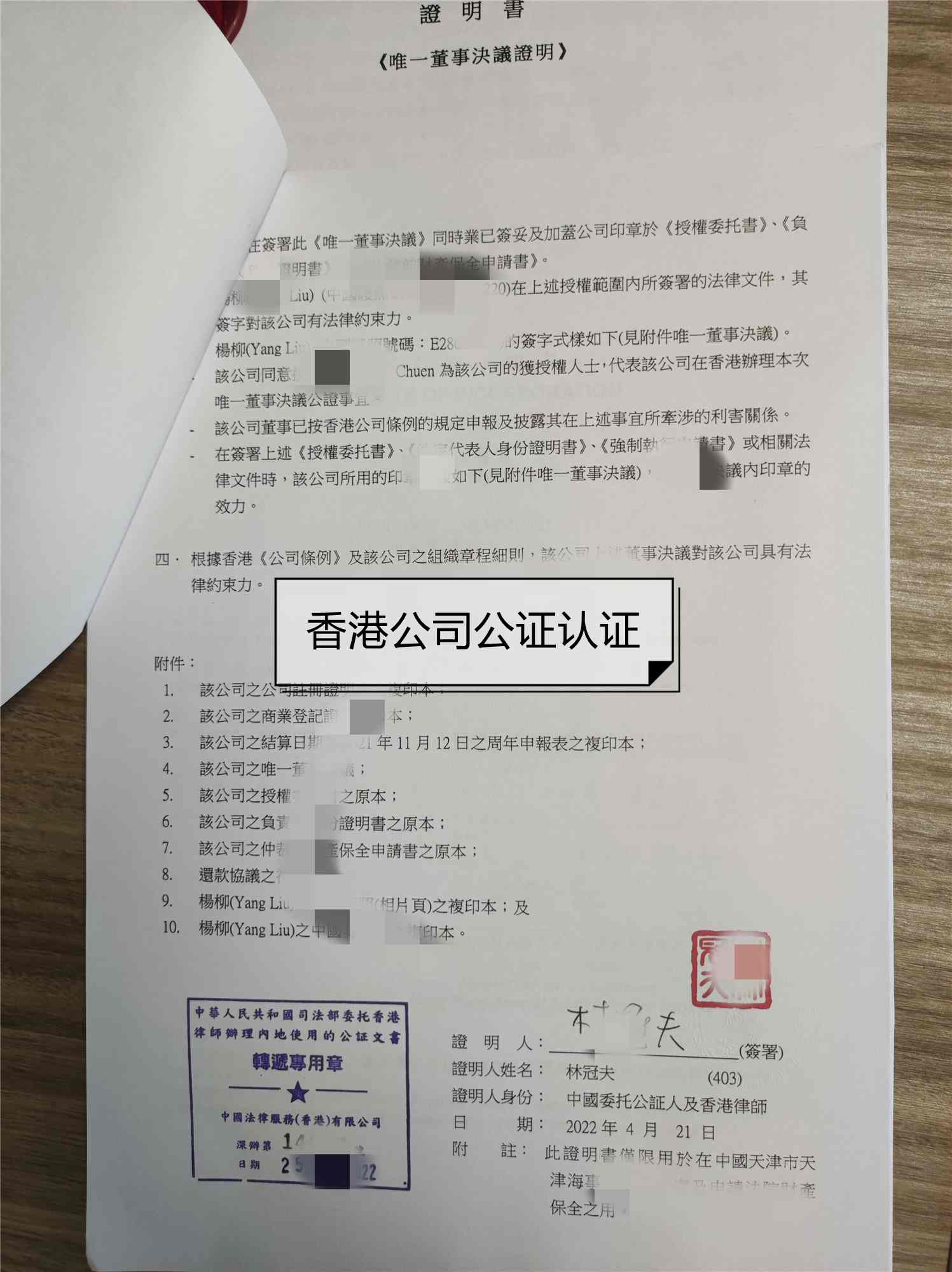 1、必須提供需公證資料原件和公司擁有人有效身份證明原件
