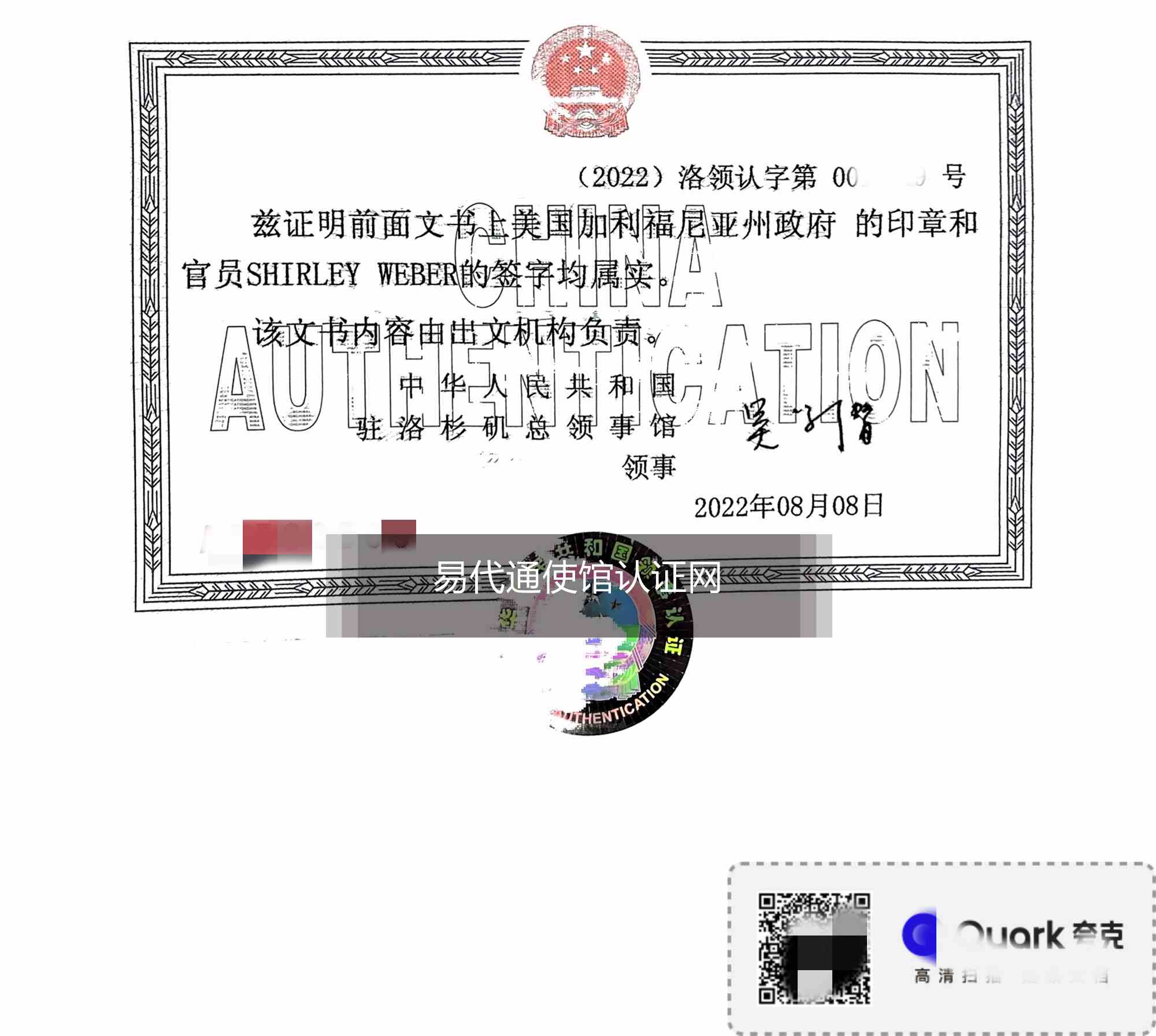 (三)駐美使館所在領(lǐng)區(qū)還需送美國國務(wù)院認證辦公室認證;