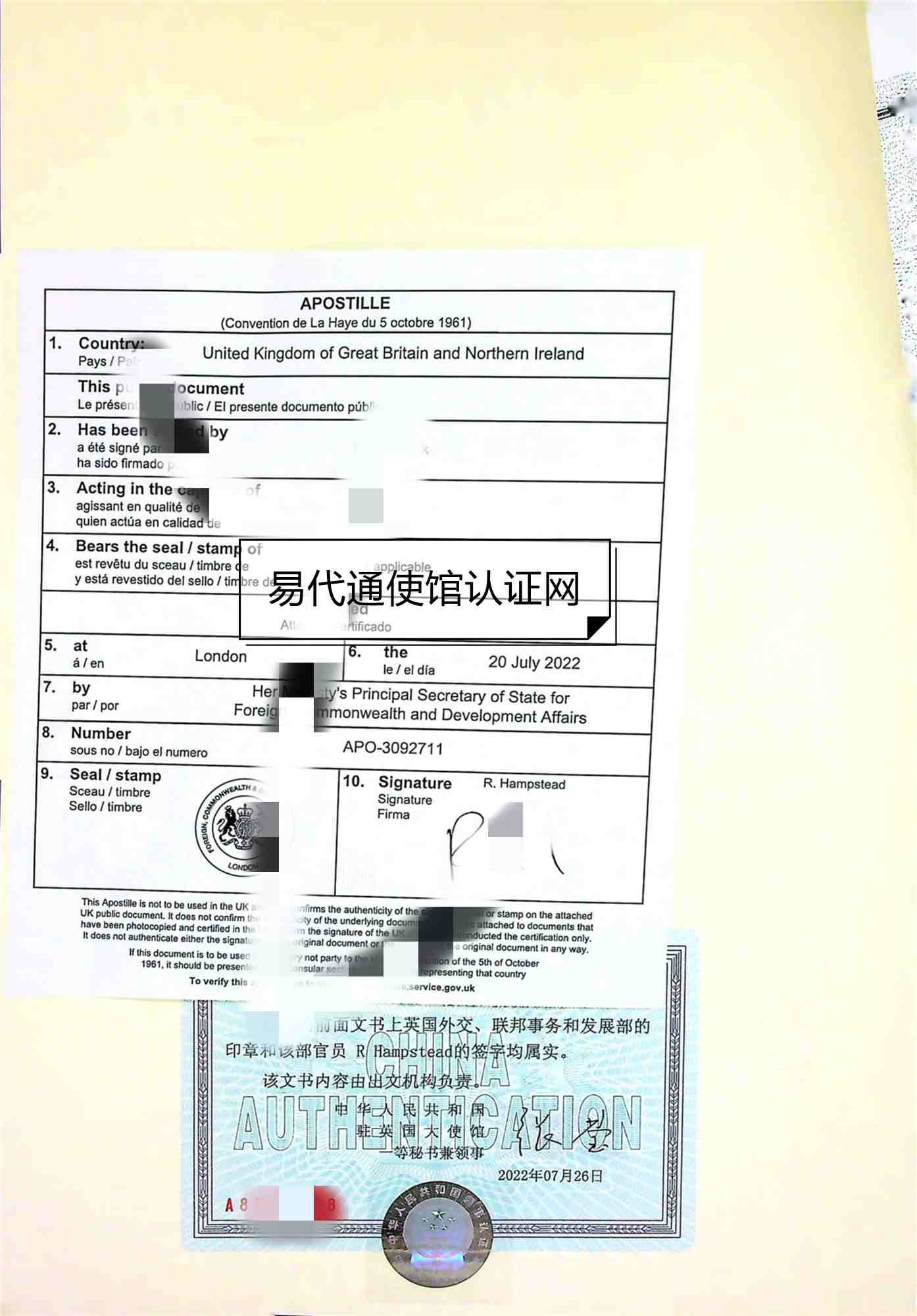 2、再送往英國(guó)外交部進(jìn)行認(rèn)證